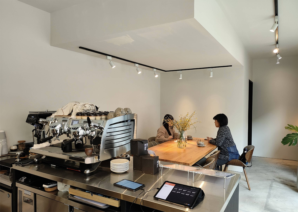 - 高穿透的開放式佈局:在受限的坪數內整合開放式廚房與烘豆空間,搭配軌道燈具精準的光影投射,讓職人沖煮咖啡與烘豆的過程成為空間中最動人的風景。